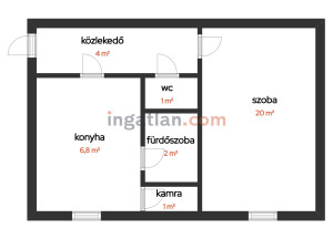 35 m²-es: tágas, keleti fekvésű lakószoba, közlekedő, konyha, kamra, kis fürdőfülke és külön WC, valamint praktikus beépített szekrények teszik jól kihasználhatóvá a teret.