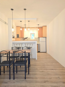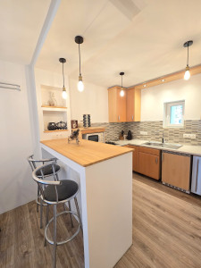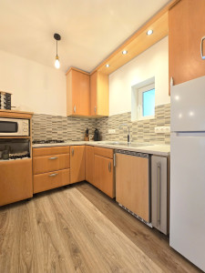Konyha–étkező: étkezőpulttal, mosogatógép kiállással