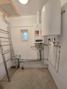 Fűtés: Ariston kombi gázkazán, lapradiátoros hőleadókkal
