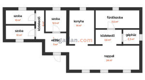 Szobák: 3 szoba + nappali + konyha-wc + fürdő + kazánház + előtér